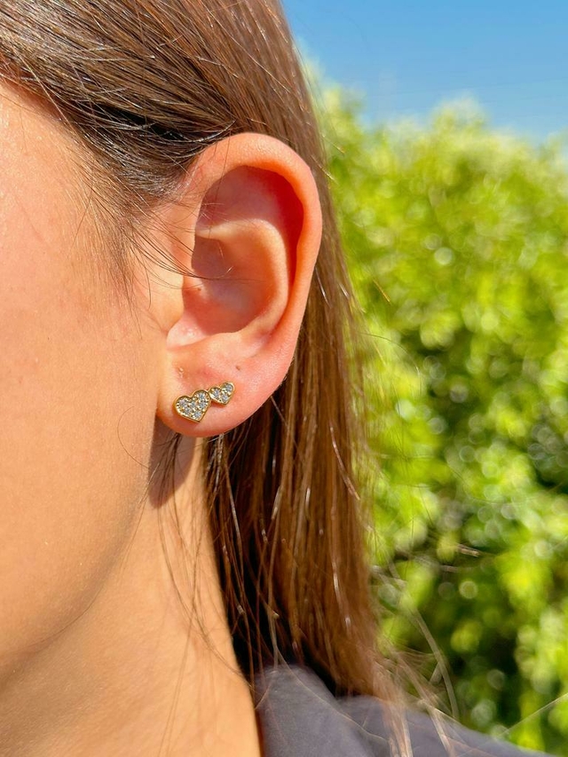 Brinco pequeno coração micro zircônia; medindo aproximadamente 2cm Um ano de garantia, banhado a ouro 18k. Referência 0210859, fator 0,497