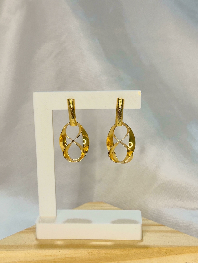 Brinco médio pêndulo espiral; medindo aproximadamente 4,5cm Um ano de garantia, banhado a ouro 18k. Referência 0210936, fator 0,695